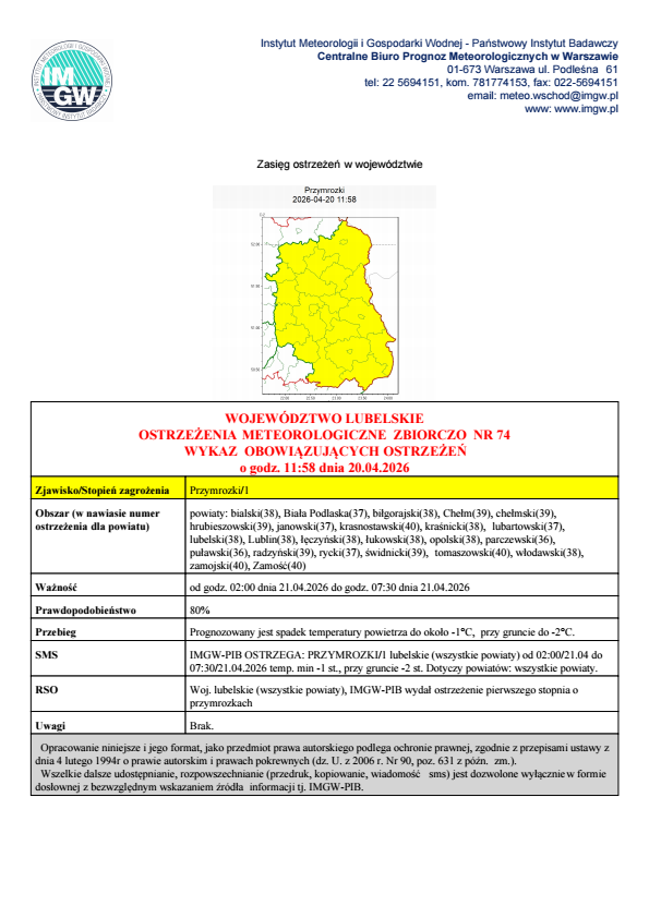 Uwaga przymrozki! 20 Kwi 2026, PonData publikacji, 20 Kwi 2026, Pon, Daniel BetiukAutor, Daniel Betiuk, 87Ilość wyświetleń, 87